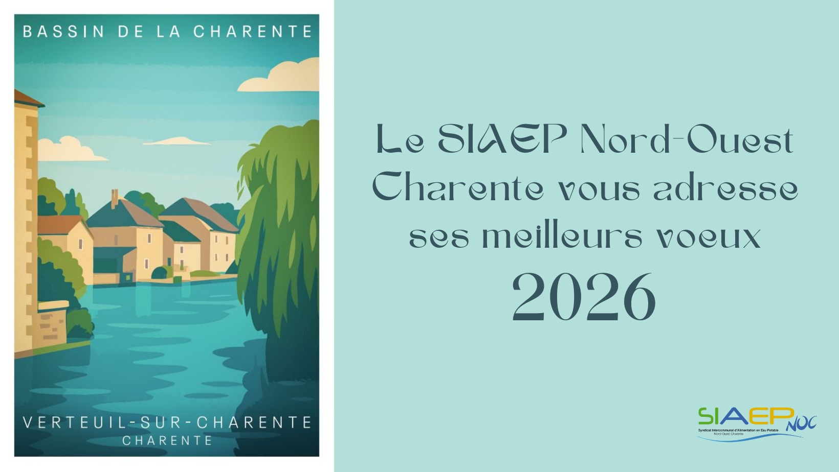 Belle annee 2026 Le Président Marc Vigier, l’ensemble des délégués et le personnel du SIAEP Nord-Ouest Charente vous adressent leurs meilleurs voeux PrécédentSuivant